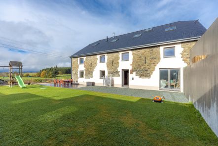 Mitten in einem baumbestandenen Park, in einem Dorf nahe Durbuy in der Provinz Luxemburg, liegt dieses eindrucksvolle und geräumige Ferienhaus. Es handelt sich dabei um das Nebengebäude eines Schlosses, welches 15 Personen beherbergen kann und dabei allen modernen Komfort bietet. Die Unterkunft besteht aus zwei separaten Teilen, was einen Urlaub in großer Familienrunde besonders angenehm macht. Sie verfügen insgesamt über 8 Schlafzimmer, 4 Badezimmer (davon zwei mit Badewanne) und 2 perfekt ausgestattete Küchen. Hier findet garantiert jeder seine Lieblingsecke zum Entspannen, denn das Ferienhaus verfügt über mehrere Aufenthalts- und Entspannungsbereiche: eine Leseecke sowie zwei Wohnzimmer mit Holzofen und bequemen Sofas, die zu gemütlichen Abenden am Kaminfeuer einladen. Die großen Glastüren eröffnen einen herrlichen Ausblick auf den 200 m² großen Park. Während Sie auf der Terrasse schon einmal den Grill anwerfen, können sich die Kinder im Garten nach Herzenslust an den Spielgeräten vergnügen.