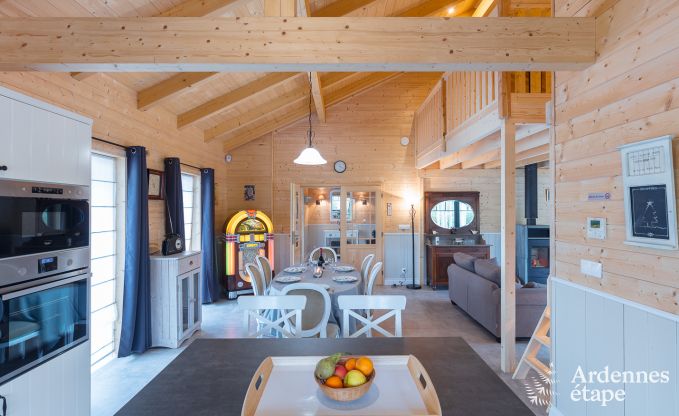 Dieses komfortable, eingeschossige Chalet mit Platz für 6 Personen auf einem 1000 m² großen, bewaldeten Anwesen erwartet Sie für einen Urlaub in einer ruhigen Umgebung. Mit seiner reizvollen Dekoration und der schönen Sauna ist dieses Haus eine wahrhaftige Ruheoase für Ihren Urlaub. Der vollkommen aus Holz gestaltete, rustikale Stil verleiht dem Haus eine einladende Atmosphäre , die...