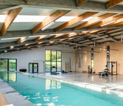 Ein weiteres einzigartiges Merkmal: die riesige Sporthalle mit Riesenbildschirm! Wenn Sie nach dem Radfahren Ihre müden Muskeln entspannen möchten, können Sie im beheizten Innenpool (25m / 2,5m / 1,35m) ein paar Bahnen schwimmen. Entspannen Sie danach in dem beheizten Entspannungsraum mit einer Massageecke auf der Mezzanine.