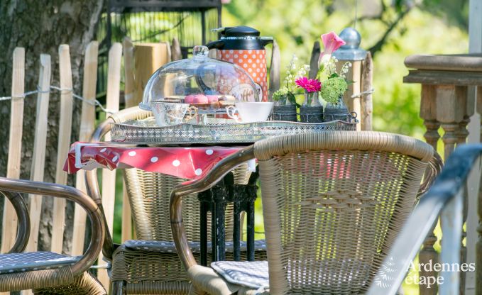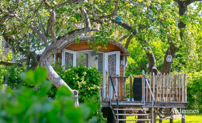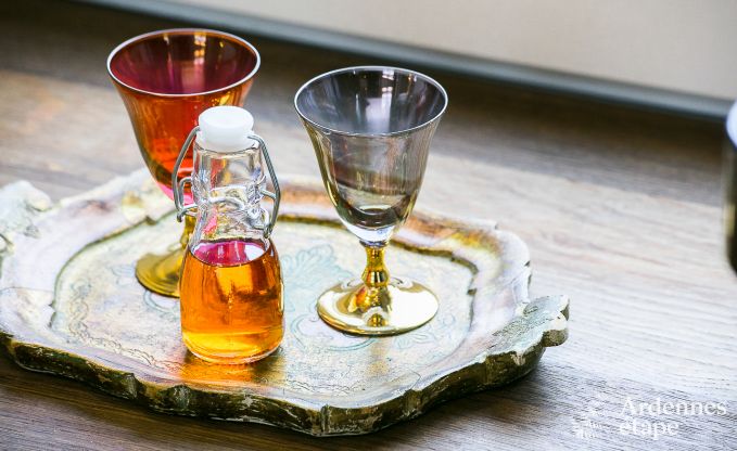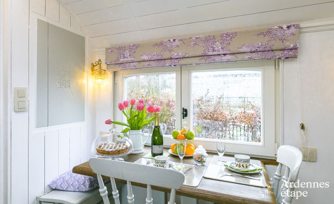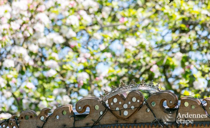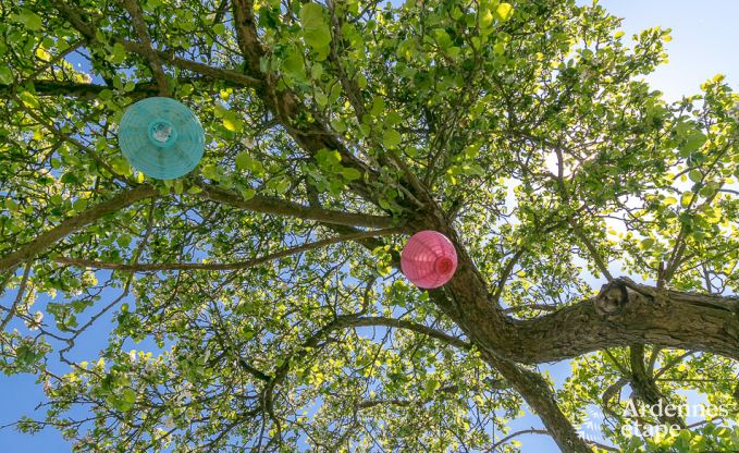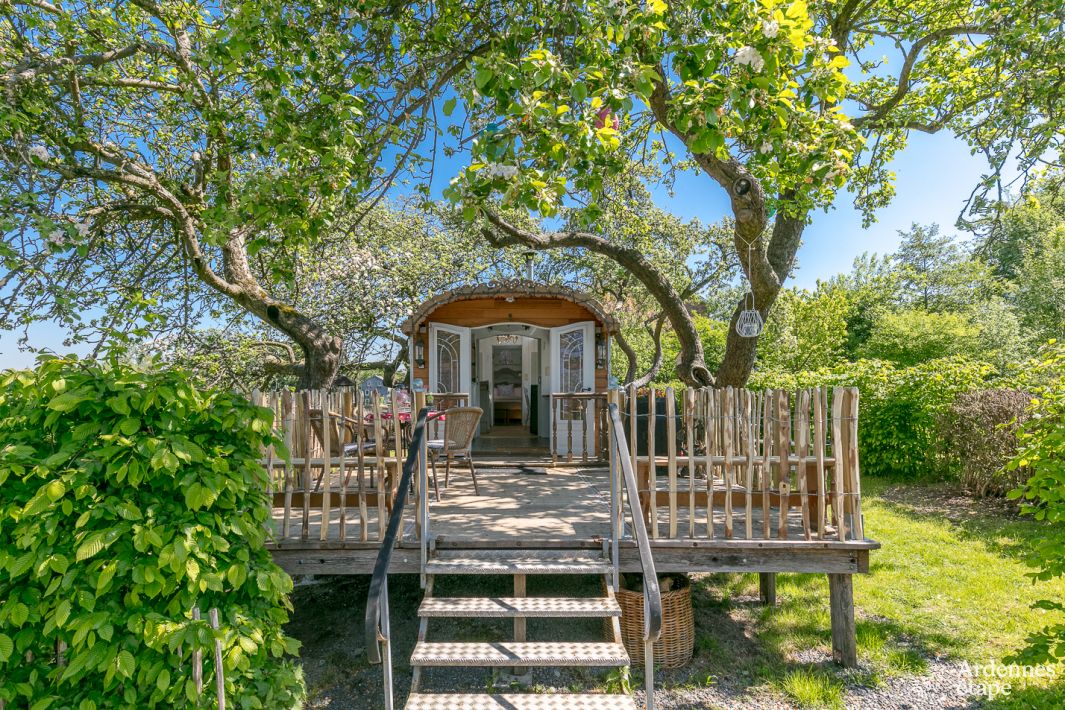 Entdecken Sie einen luxuriösen Wohnwagen im böhmischen Luxusstil und übernachten Sie inmitten der grünen Natur von Erezée, in der Provinz Luxemburg. Die Auswahl der Dekoration stand vollständig im Zeichen einer Kombination herkömmlicher Gemütlichkeit dieser Art atypischer Unterkünfte mit einem eher gewagten Stil in einem französisch-aristokratischen Ambiente! Die verfügbare Wohnfläche wurde auf ingeniöse Weise genutzt, so dass Sie über einen Wohnbereich mit Wohnzimmer/Esszimmer und Ofen verfügen können, elegant ergänzt mit einem verblüffenden Glasdach mit Kronleuchter. Das Sofa kann nach Belieben zur Bettstatt für eine dritte Person umgestaltet werden. Das Schlafzimmer bildet einen intimen Raum und ist mit Bettwäsche in höchster Qualität ausgestattet. Praktischer Stauraum und eine äußerst romantische Einrichtung runden das Bild ab. Dank der funktionellen Küche können Sie Ihre Kochkünste frei entfalten, bevor Sie es sich am Ofen gemütlich machen, um Ihr Lieblingsgericht mit Ausblick auf den Garten zu genießen. Hier fehlt es Ihnen an nichts, was Sie für Ihren Aufenthalt benötigen, denn auch Kabel-TV, ein DVD-Player und sogar Internetanschluss gehören zur Ausstattung. Sie erwartet zur herrlichen Entspannung eine schöne Terrasse im Garten und ein privater Garten, ebenso wie ein zusätzlicher, 600 m² großer Raum mit Gartenmöbeln, Schaukel und Rutschbahn!