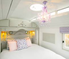 Entdecken Sie einen luxuriösen Wohnwagen im böhmischen Luxusstil und übernachten Sie inmitten der grünen Natur von Erezée, in der Provinz Luxemburg. Die Auswahl der Dekoration stand vollständig im Zeichen einer Kombination herkömmlicher Gemütlichkeit dieser Art atypischer Unterkünfte mit einem eher gewagten Stil in einem französisch-aristokratischen Ambiente! Die verfügbare Wohnfläche wurde auf ingeniöse Weise genutzt, so dass Sie über einen Wohnbereich mit Wohnzimmer/Esszimmer und Ofen verfügen können, elegant ergänzt mit einem verblüffenden Glasdach mit Kronleuchter. Das Sofa kann nach Belieben zur Bettstatt für eine dritte Person umgestaltet werden. Das Schlafzimmer bildet einen intimen Raum und ist mit Bettwäsche in höchster Qualität ausgestattet. Praktischer Stauraum und eine äußerst romantische Einrichtung runden das Bild ab. Dank der funktionellen Küche können Sie Ihre Kochkünste frei entfalten, bevor Sie es sich am Ofen gemütlich machen, um Ihr Lieblingsgericht mit Ausblick auf den Garten zu genießen. Hier fehlt es Ihnen an nichts, was Sie für Ihren Aufenthalt benötigen, denn auch Kabel-TV, ein DVD-Player und sogar Internetanschluss gehören zur Ausstattung. Sie erwartet zur herrlichen Entspannung eine schöne Terrasse im Garten und ein privater Garten, ebenso wie ein zusätzlicher, 600 m² großer Raum mit Gartenmöbeln, Schaukel und Rutschbahn!