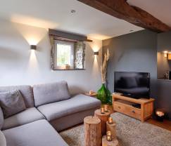 Das Haus verfügt über ein geräumiges und stimmungsvolles Wohnzimmer, in dem Sie sich wunderbar entspannen können. Die Einrichtung ist warm und einladend, perfekt für einen romantischen Aufenthalt. Die Küche ist komplett ausgestattet, sodass Sie die Möglichkeit haben, eine köstliche Mahlzeit zuzubereiten und einen gemütlichen Abend zusammen zu genießen.