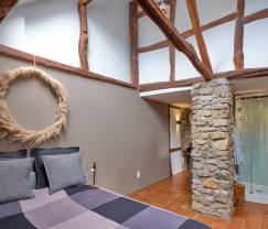 Das Schlafzimmer ist komfortabel und bietet eine gute Nachtruhe. Es gibt 1 Badezimmer, das modern und praktisch eingerichtet ist. Zur zusätzlichen Entspannung können Sie den Whirlpool nutzen, ein absolutes Highlight dieses Ferienhauses. Stellen Sie sich vor: Nach einem Tag voller Aktivitäten in der Umgebung können Sie sich wunderbar im Whirlpool mit Ihrem Liebsten entspannen.