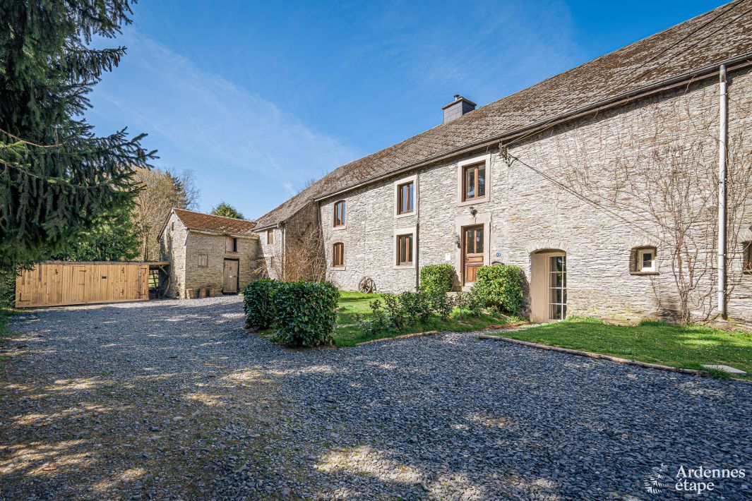 Für Liebhaber von Naturstein ist diese Ferienunterkunft wie gemacht. Hier werden sie, eingebettet zwischen Wald und Tal, im Herzen der belgischen Ardennen einen warmen Empfang genießen und einen absolut ruhigen Urlaub im Grünen verleben. Treten Sie ein und richten Sie sich in den 5 Schlafzimmern ein, die hübsch dekoriert sind und deren sichtbaren Balken die charmante Ausstrahlung noch verstärken! Es ist dann auch ein wahres Vergnügen, nach einem gefüllten Tagesprogramm wieder in dieses gemütliche Nest zurückzukehren. Der große und komfortable Wohnbereich mit ausladenden Canapés und einem Holzofen strahlt eine warme Atmosphäre aus. Musikbegeisterte können am Klavier ihre Künste zeigen. Dieser Ort eignet sich hervorragend für ruhige und musikalisch angehauchte familiäre Momente. Auch die große Küche verfügt über alle notwendigen Geräte, die das Kochen zu einem Kinderspiel werden lassen. Und an Winterabenden können Sie das Raclette herausholen! Dann wäre noch die kleine, anmutige Terrasse zu nennen, die auf einen privaten Garten von 150 m² hinausläuft.
