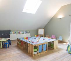 Das Wohnzimmer mit offenem Kamin hat nicht nur Fernseher, DVD und Internetanschluss sondern auch einen Billard- und einen Kickertisch, mit denen Kinder und Jugendliche ihren Spaß haben werden. Für die Kleinsten wurden 2 Spielzimmer eingerichtet.