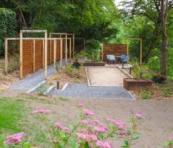 Und natürlich stehen auch die Außenanlagen Ihres Ferienhauses dem in nichts nach. Sie profitieren von einem privaten Garten mit einer Fläche von 2000m², der von mehreren Bäumen gesäumt wird, was dem gesamten Anwesen eine sehr ansprechende, ländliche Note verleiht. Sie können den Garten und die Terrasse für einen Grillabend nutzen, während die Kinder sich zum Beispiel mit der Schaukel vergnügen.