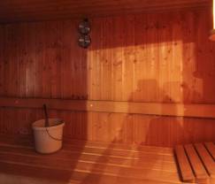 Im Untergeschoss (auf Gartenniveau) erwartet Sie ein Wellnessraum mit Sauna und Solarium sowie Fitnessgeräten. Hier können Sie sich nach einer ausgedehnten Wanderung prima erholen.