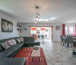 Dieses ehemalige Wohnhaus der Eigentümer wurde erst vor Kurzem renoviert und zum Ferienhaus umgebaut. Die Vermieter, die Sie erstklassig empfangen und Ihren Aufenthalt unvergesslich machen möchten, haben an alles gedacht: 6 Zimmer, 3 Badezimmer, 2 Wohnzimmer, darunter eine Fernsehecke am Holzofen und eine Spielecke auf dem Mezzanin im Obergeschoss, ein Wellnessbereich, Kinderspiele, hochwertige Betten, WLAN-Internetanschluss. Sie werden sich hier sofort wie zuhause fühlen.