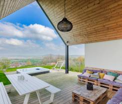 Wir alle wünschen uns doch nichts sehnlicher, als zur Ruhe zur kommen und die Zeit mit den Menschen zu genießen, die uns wirklich wichtig sind. Mit diesem besonders schicken und einladenden Ferienhaus mit Panoramablick auf die wunderschöne grüne Umgebung haben die Eigentümer Sylvie und Philippe ein besonderes Händchen dafür bewiesen, auf dieses Bedürfnis einzugehen. Die beiden haben der modernen Villa ein wenig Ibiza-Flair verliehen, das Sie mit Ihren Freunden und/oder Ihrer Familie ganz entspannt genießen dürfen. Nach einem erlebnisreichen Tag lädt der Whirlpool mit seinem fabelhaften Ausblick zum Relaxen ein – eine Wohltat für Körper und Geist. Nutzen Sie auch die schöne Terrasse, um den Sonnenuntergang zu genießen und gemeinsam auf einen wunderschönen Urlaub anzustoßen!