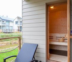 Genießen Sie Momente in geselliger Runde im gemütlichen Wohnzimmer mit Kaminofen und Fernseher oder auf der Terrasse, die bei schönem Wetter Ihr Lieblingsort sein wird. Außerdem erwartet Sie auf der Terrasse eine Sauna für Momente purer Entspannung.