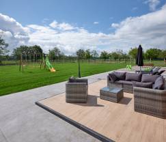 Die große private Terrasse ist perfekt für gemütliche Grillabende. Der Grill und die Gartenmöbel stehen für dich bereit! Das Haus hat auch eine Bar im Inneren, ideal für einen gemütlichen Abend untereinander.