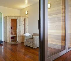 Für diejenigen, die nach Entspannung suchen, bietet die Villa einen umfassenden Wellnessbereich mit einer Infrarotkabine. Der Whirlpool und der Spa des Schwimmbereichs stehen zur Nutzung bereit, sogar im Winter, für ein ultimatives Entspannungserlebnis. Für die Sportlichen gibt es einen Fitnessraum mit verschiedenen Geräten.