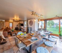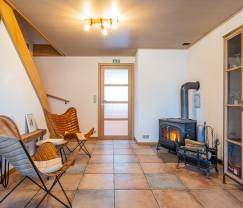 Das Wohnzimmer ist mit einem gemütlichen Holzofen und einem Holzpellet-Ofen ausgestattet, was für eine warme und einladende Atmosphäre sorgt. Die Garage bietet ausreichend Platz zum Verstauen von Fahrrädern und anderer Sportausrüstung. Draußen finden Sie eine private Terrasse und einen privaten Garten, perfekt zum Entspannen in der Sonne. Die Gartenmöbel laden zu gemütlichen Abenden ein, während Sie eine köstliche Mahlzeit auf dem Holzgrill zubereiten.