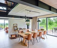 Prachtig huis, nieuwbouw, overal grote schuiframen met magnifiek zicht op de velden. Zeer rustig gelegen.