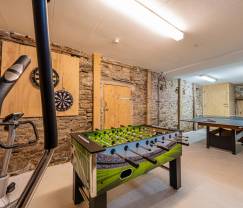 Das geräumige Ferienhaus bietet 4 Schlafzimmer, verteilt auf zwei Geschosse, 2 Badezimmer, davon eines mit Whirlpool, und einen separaten Unterhaltungsraum mit Dartscheibe und Tischtennisplatte. Außerdem verfügen Sie über zwei gemütliche Wohnzimmer mit Fernseher (und Kabelfernsehen) und bequemen Sofas, zwei große Esstische und zwei voll ausgestattete Küchen mit 4-flammigem Gasherd, Backofen mit Mikrowelle und Kühlschrank (mit Gefrierfach). Nicht zu vergessen ist der Geschirrspüler, ein sehr praktisches Detail.