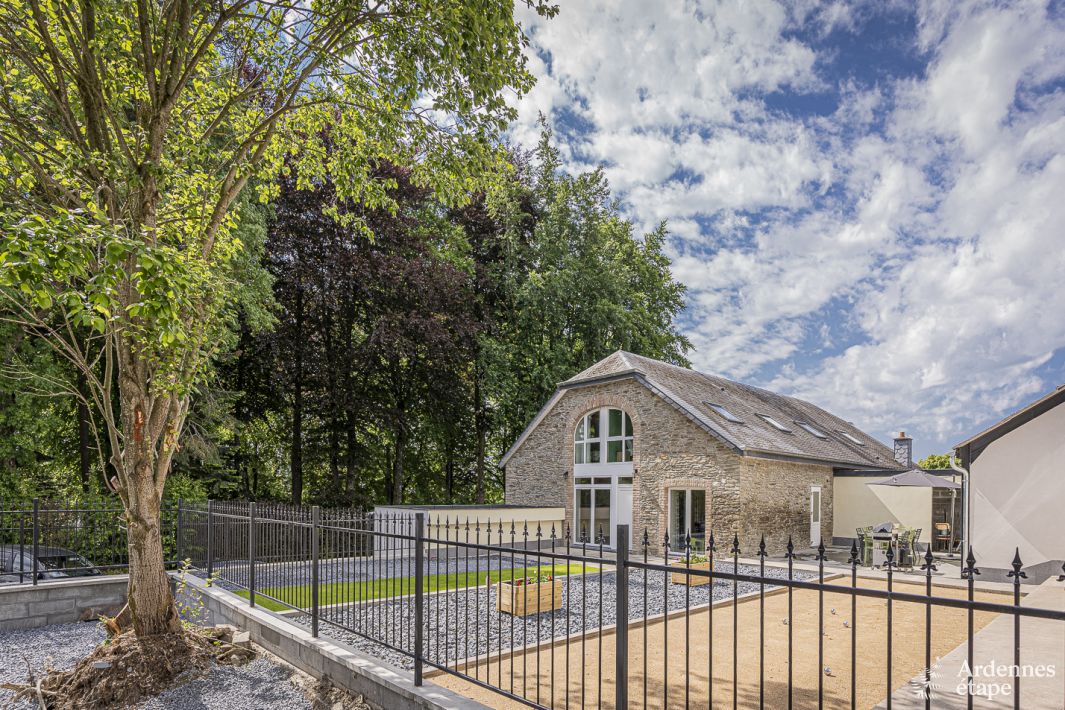 Eine schöne offene Küche, ein gemütlicher Wohnbereich mit Esszimmer und Kaminofen, ein Wellnessbereich mit Sauna… Wenn Sie dieses geräumige, offene und helle Ferienhaus betreten, werden Sie kaum glauben, dass es einmal eine einfache Scheune war. Schlafen Sie bis in die Puppen in einem der vier schönen Schlafzimmer, genießen Sie ein Abendessen in geselliger Runde vor dem Kaminofen, veranstalten Sie ein Boule-Turnier im Garten oder kosten Sie auf der schönen Terrasse ganz einfach die Ruhe eines kleinen Dorfs in den Ardennen aus. Das Glück liegt in den einfachen Dingen!
