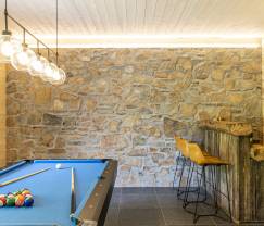 Dieses kürzlich renovierte 4-Sterne-Ferienhaus ist der ideale Ort für eine Zusammenkunft als Gruppe. Mit seinen 7 Schlafzimmern und 7 geschmackvoll eingerichteten Bäder bietet es Platz für bis zu 15 Personen. Es ist nicht nur geräumig, sondern auch voller Charme und sehr gemütlich. Sichtbarer Naturstein, Holzvertäfelung an Wänden und Decken, Holzgebälk: Sie werden sich wie in einem riesigen Chalet in den Bergen fühlen. Und das Beste: Eine Infrarotkabine und eine Whirlpool-Badewanne runden das Bild eines traumhaften Aufenthalts perfekt ab. Und erst der wunderschöne verglaste Wohnbereich mit Blick auf die Terrasse, den Garten und den kleinen Bach! Hier können Sie sich nach einem Spaziergang an der frischen Luft entspannen, während die anderen sich beim Billard versuchen. Abends können Sie einen Aperitif am Kamin nehmen und dann an einem der großen, geselligen Tische Platz nehmen. Einfach wunderbar!