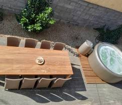 Ihr verfügt hier über eine gemütliche private Terrasse mit Whirlpool, ideal, um gemeinsam die frische Luft und die wunderschöne Umgebung zu genießen. Außerdem gibt es einen Gasgrill und ein Boulefeld, und im Inneren habt ihr einen Billiardtisch. Stundenlanger Spaß garantiert!