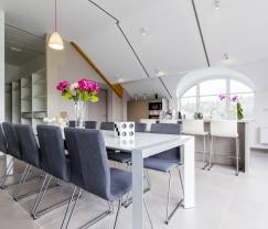 Diese geräumige Wohnung im zweiten Geschoss bietet Ihnen einen großen Wohnbereich mit viel Tageslicht, bestehend aus einem Wohnzimmer, einer gut ausgestatteten Küche und einem Esszimmer.