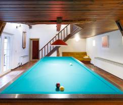 Das große Esszimmer mit Kaminofen ist besonders einladend, und die Küche ist für die Zubereitung Ihrer Mahlzeiten perfekt ausgestattet. Hier steht alles im Zeichen der Erholung und Unterhaltung von Klein und Groß: Indoor-Pool, Wellnessbereich mit Sauna, Heimkino, Unterhaltungsraum mit 2 Tischkickern, Tischtennisplatte, Dartscheibe und Kinderspielzeug und ein separater Billardraum mit Bar, wo Sie entspannt Ihren Aperitif genießen können. Wenn Sie geschäftlich unterwegs sind, verfügen Sie außerdem über einen Konferenz-/Seminarraum mit Projektionsausstattung. Im gepflegten, privaten Garten erwarten Sie ein schöner kleiner Teich, ein Trampolin für die Kinder und ein Grill für gemütliche Abende in froher Runde. Außerdem gibt es einen abschließbaren Fahrradunterstand mit Reinigungsausstattung und einen Privatparkplatz. Sie verfügen im ganzen Haus über WLAN.