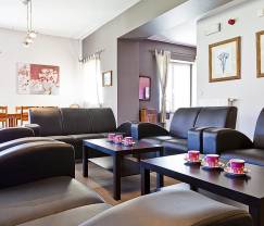 Fijne vakantiewoning vlakbij het centrum en de kasteelruïne. De keuken is goed uitgerust met voldoende materiaal voor de grote groep. De kamers en badkamers zijn basic maar oké. Voldoende ruimte in de leefruimte voor heel de groep. De speelruimte boven grenst aan de slaapkamers. De sauna in deze speelruimte is wat gek. De tuin en terras zijn vrij klein maar grenzen aan een ruime groene omgeving met speeltuin van de naastliggende school. Een beetje jammer dat er een hoge draadafsluiting staat.