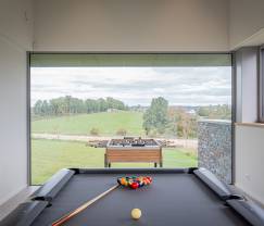 Die Villa verfügt über einen Grill, auf dem Sie köstliche Mahlzeiten zubereiten können, während Sie den wunderschönen Blick auf die umliegende Natur genießen. Der private Garten ist der perfekte Ort, um sich zu entspannen und die Ruhe und Stille des Landes zu genießen. Für Sportbegeisterte gibt es eine Sauna, um sich nach einem Tag voller Aktivitäten zu entspannen. Und für die Kinder gibt es einen Kicker und Billardtisch für stundenlangen Spielspaß.