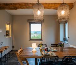 Een gastvrij onthaal. We waren erg verrast met de grote ruimte van het appartement. Alles was compleet en proper. Hele mooie ligging voor dagtrips naar Huy en Namur. Veel privacy en een mooi uitzicht over de wijnvelden en bossen richting de Maas. Ons appartement was geschikt voor 4 personen. Het appartement naast ons is geschikt voor 8 personen. Beide appartementen via een tussendeur onderling te bereiken. Ideaal voor een grote familie. Verder heel veel rust. Drie sterren+ méér dan waard.