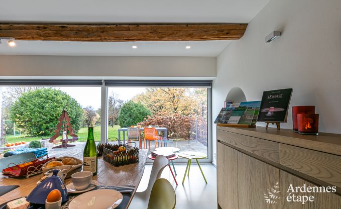 Dieses einladende Ferienhaus lässt viel Tageslicht hinein und bietet eine umfassende Ausstattung für eine kleine Auszeit für junge Eltern: Die ideale Adresse für einen (vielleicht sogar den ersten) Kurzurlaub mit der Familie. Schlafen Sie mal so richtig schön aus, und genießen Sie ein angenehmes Brunch oder ein leckeres Frühstück mit traumhaftem Blick durch die großen, modernen Glastüren auf die malerische Hochebene des Herver Landes. Im südlich ausgerichteten Garten kann Ihr vierbeiniger Begleiter nach Herzenslust herumtollen, während Sie auf der schönen Terrasse die ruhige Umgebung der Felder und Obstgärten auf sich wirken lassen. Die jüngsten Gäste können sich auf der Schaukel und der Rutsche amüsieren. Lust auf eine kleine Partie Boule? Im Garten steht Ihnen ein Boulodrome zur Verfügung.