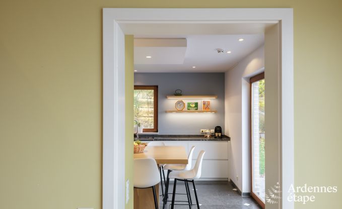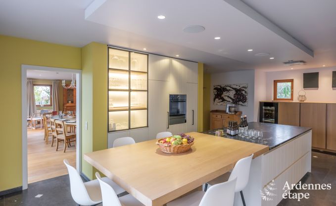 Heel mooi vakantiehuis voor families of vriendengroep. Fantastische keuken voor wie goed wil koken tijdens zijn verblijf. Prettig om met baby's en/of peuters heen te gaan omdat er veel voorzieningen voor hen zijn. Schitterend uitzicht vanuit de living, keuken en van op het terras. Parasols en stoelen ter plekke. Heerlijke (wel wat te zachte) boxspring bedden in gezellige kamers. Erg goede bakker en slager op enkele km. Ravel en wandelwegen vlakbij.