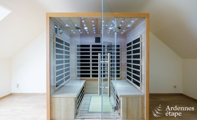 Das Haus ist mit allerlei Annehmlichkeiten ausgestattet, um deinen Aufenthalt so angenehm wie möglich zu gestalten. So gibt es einen Kamin für gemütliche Abende, eine Infrarotkabine und eine Sauna für ultimative Entspannung. Für die Kinder gibt es ein Spielzimmer mit Kinderspielen. Auch draußen können sie sich auf der Schaukel und der Rutsche austoben.