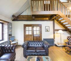 Im ersten Stock überragt ein Zwischengeschoss mit Leseecke den Esszimmerbereich. Das geräumige und ausgesprochen gemütliche Wohnzimmer lädt zu einem ruhigen Abend ein. Aber auch Kinder können dort ungestört spielen.