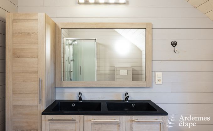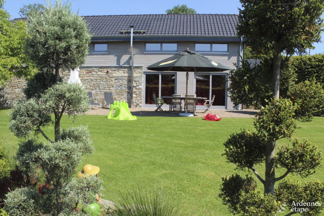 Dieses herrliche 3,5-Sterne-Ferienhaus für 6 Personen in der Provinz Lûttich ist der ideale Ort für einen Urlaub mit der Familie oder unter Freunden im Herzen der Ardennen. Die Raumgestaltung des Ferienhauses kombiniert Modernität und Ursprünglichkeit. In der gepflegten Inneneinrichtung kann man so richtig abschalten und neue Kräfte tanken. Besonders der Hauptwohnbereich mit seiner komfortablen Sitzgruppe am Pelletofen, einem wunderschönen geräumigen Esszimmer, das zu einem leckeren Essen in geselliger Runde einlädt, das Sie in dermodernen und voll ausgestatteten Küche zubereiten können, wird Ihnen gefallen. Im Obergeschoss Ihrer Ferienunterkunft von Ardennes-Etape befinden sich die 3 behaglichen und geschmackvoll eingerichteten Zimmer für erholsame Nächte in angenehmer Ruher. Darüber hinaus ist eines der beiden modernen und praktischen Badezimmer einer privaten Nutzung vorbehalten.