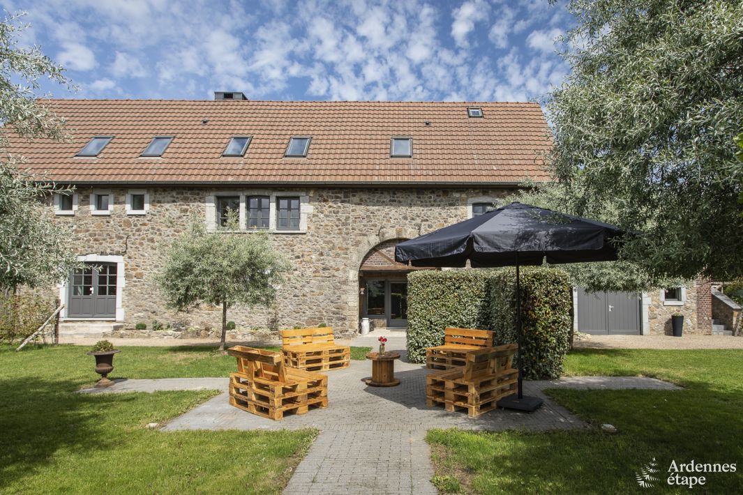 Gemütliches und geräumiges Ferienhaus (mit 6 Schlafzimmern und 6 Badezimmern) am Rande eines ruhigen Dörfchens. Sonniger Garten mit schönem Ausblick! $µ Schöne Holzbalken, regionaler Naturstein, authentische Details. Sie lieben Häuser, die eine Seele haben? Dann sind Sie hier genau richtig! Dieses Haus wurde umfangreich zu einer 4-Sterne- Unterkunft renoviert, wobei die Holzbalken des...