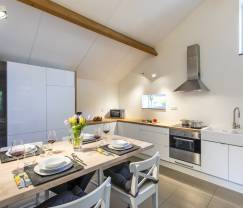 Het is een knap modern huisje dat zijn authentieke uitstraling wist te behouden. Het huisje lag er zeer net bij. Ook de moeilijk te kuisen plaatsen waren keurig gekuist, heel aangenaam! In de andere reviews word aangegeven dat er weinig direct zonlicht de woonkamer in kan. Dat klopt misschien wel maar tegelijkertijd mag ook belicht worden dat ik nog nooit een vakantieverblijf ben tegengekomen met zo een uitgekiemd lichtplan. De belichting was prachtig! De keuken was zeer goed uitgerust.