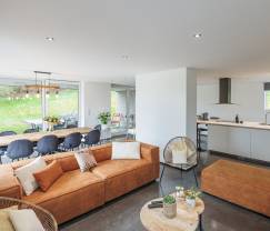 Lust auf einen tollen Fahrradurlaub? Dieses schöne Ferienhaus am Waldrand mit 4 Schlafzimmern und 3 Badezimmern ist genau das Richtige für Sie! Hier gibt es einen sicheren Fahrradunterstand und ein Reinigungsset speziell für Ihre Zweiräder. Haben Sie sich gut ausgepowert? Dann können Sie zurück im Ferienhaus die malerische Aussicht auf die grüne Umgebung genießen – im Winter von Ihrem gemütlichen Sessel aus, im Sommer auf den beiden (überdachten) Terrassen, während Sie den Sonnenschein und ein kühles regionales Bier genießen, oder sich im Whirlpool entspannen.