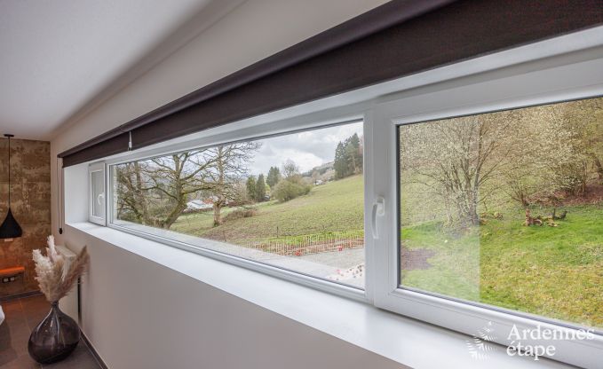 Prachtig huis met een fantastisch uitzicht en op 3 km van centrum Hotton. Zeer rustig gelegen. Mooie grote tuin met terras en overkapping. Jacuzzi is top. Alles is aanwezig voor een topvakantie. Zeer prettige communicatie met de eigenaar. Hele grote open leefruimte en diverse zithoekjes. 2 slaapkamers met ensuite badkamer, extra badkamer met bad en douche
