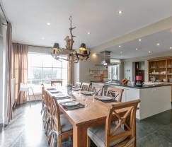 Bei Ihrer Ankunft wird Sie dieses Ferienhaus als Erstes mit seiner wunderschönen ländlichen Umgebung begeistern. Als Nächstes entdecken Sie das harmonische Interieur, das auf rustikale Elemente und ein elegantes Mobiliar setzt. Sie verfügen nichtsdestotrotz über eine moderne und hochwertige Ausstattung, wie etwa in der praktischen Küche, die Ihnen alle Annehmlichkeiten bietet. Das Ferienhaus ist mit seinen 4 komfortablen Schlafzimmern und 2 Bädern perfekt für 9 Personen geeignet. Ein Babybett und ein Hochstuhl stehen ebenfalls zur Verfügung, was die jungen Eltern besonders freuen wird. Für einen einzigarten Familienurlaub ist also alles vorhanden. Der Wohnbereich ist besonders einladend und gemütlich eingerichtet. Hier werden Sie mit Sicherheit wunderbare gemeinsame Momente erleben, während Sie bequem im Wohnzimmer auf dem Sofa sitzen oder im Esszimmer zusammen speisen und den Blick durch die großen Fenster genießen. Die Kinder können sich draußen im Garten nach Herzenslust vergnügen, während Sie gemütlich auf der Terrasse sitzen und schon einmal den Grill anwerfen.