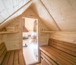 Im Außenbereich gibt es zur großen Freude der Erwachsenen außerdem eine Sauna sowie eine finnische Grill-Kota, eine gemütliche Holzhütte, in der Sie sich abends um den zentralen Grill versammeln und das perfekte Urlaubsgefühl genießen können.