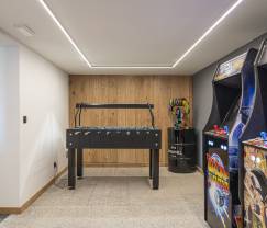 Weitläufiges und helles Ferienhaus mit 6 Hotel-würdigen Schlafzimmern mit eigenem Bad. Eines dieser Schlafzimmer befindet sich im Erdgeschoss, was ideal für Menschen mit eingeschränkter Mobilität ist. Das größte Plus dieses Ferienhauses? Die vielen Entspannungsmöglichkeiten! Eine Bar mit hochwertiger Hifi-Anlage zum Hören Ihrer Lieblingsmusik, Arcade-Spiele, ein Tischfußball, Darts und ein Billardtisch... Der wunderschöne Spielraum im Keller wird Jung und Alt begeistern! Wenn Sie lieber in Ruhe entspannen möchten, steht Ihnen hier auch ein moderner Entspannungsbereich mit Sauna und Whirlpool zur Verfügung.