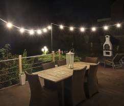 ruim huisje dat zeer mooi gerenoveerd is met een groot houten terras langs drie zijden van het huis, rustig gelegen, 600m van het centrum, wel zeer steile weg naar het centrum, prachtige zeer grote volledig omheinde tuin, ideaal voor honden, spijtig dat de zetels sporen vertonen van honden .... , perfect gekuist !!! kan niet gezegd worden van de andere huisjes, ook kuisproducten aanwezig voor eigen gebruik in geval van een accidentje wat overal zou moeten aanwezig zijn, veel mooie wandelingen