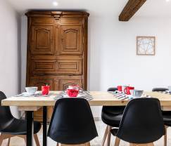 Charmante maison avec de beaux volumes avec un immense jardin ! Chambres très spacieuses, équipées de douches et WC. La salle de jeu est très agréable, nous en avons profitez ! La cuisine est bien équipée également. Très belle situation, au calme et proche de départs de randonnées. Petit piste d'amélioration : le mobilier de jardin est un peu vieillissant et mériterait d'être remplacé.
