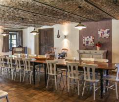 Dieser ehemalige kleine Bauernhof aus dem Jahr 1870 liegt in der Nähe von Houffalize in der Provinz Luxemburg und bietet nicht weniger als 16 Personen Platz. Bereits das Äußere des Ferienhauses verschlägt dem Betrachter die Sprache. Der komplett aus Stein erbaute Hof macht einen sehr charmanten Eindruck, und der grüne, ausgedehnte Garten mit Terrasse, der das Anwesen umrahmt, rundet das Bild ab. Das Ferienhäuschen zeichnet sich durch eine gemütliche, lauschige Innenausstattung ab, wobei die Kombination aus den Materialien Stein und Holz für ein warmes Ambiente sorgt. Im großen Wohnzimmer mit Kabelfernsehen, einem wunderschönen offenen Kamin und komfortablen Sofas und Sesseln werden Sie sich so richtig entspannen. Hier können Sie bis spät in die Nacht das knisternde Kaminfeuer oder ein gutes Buch genießen. Oder schauen Sie sich abends einfach eine schöne DVD an! Ebenfalls praktisch: in der gesamten Unterkunft können Sie kabelloses Internet nutzen. Das daran anschließende Esszimmer mit der einzigartigen gewölbten Decke ist der ideale Ort, an dem die Familie gemütlich zusammenkommen kann. Hier findet sich auch die vollständig ausgestattete Küche, unter anderem mit einer elektrischen Kochplatte mit 6 Kochfeldern, Backofen, Mikrowellenherd und einer Geschirrspülmaschine. Auch auf solche Küchengeräte wie Stabmixer, Kaffeemaschine und Wasserkocher müssen Sie nicht verzichten. Im Obergeschoss finden sich die 6 Schlafzimmer, allesamt sehr gepflegt und gemütlich eingerichtet. Dazu gesellen sich noch drei Gemeinschaftsbadezimmer mit Dusche, Waschbecken und Toilette sowie 2 private Badezimmer, eines davon mit einer herrlichen Wanne. Und schließlich bietet diese Unterkunft noch ein zweites Wohnzimmer mit TV, eine praktische Lösung, wenn sich ein Teil der Familie zurückziehen möchte. Sie möchten einmal so richtig zur Ruhe kommen? Genießen Sie dann einige Stunden in der herrlichen Holzsauna. Wetten, dass Sie nach einem langen, aktiven Tag in der Natur wieder so richtig aufblühen werden? Ein großer Vorteil dieser Gruppenunterkunft der 3-Sterne-Kategorie in der Nähe von Houffalize ist die Tatsache, dass sage und schreibe 4 Hunde erlaubt sind! Für Herrchen und Hund demnach das ultimative Ferienhaus mitten in den belgischen Ardennen. Im großen eingezäunten Garten können sich die fröhlichen Vierbeiner dann auch so richtig austoben. Auch Kinder werden sich über so viel Platz und den angrenzenden kleinen Tierpark mit unter anderem Hühnern und einem Pfau so richtig freuen. Alles in allem werden Sie in diesem gemütlichen Ferienhaus eine tolle Zeit mit der ganzen Familie verbringen!