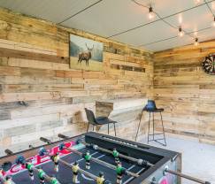 Aber das wahre Highlight dieses Ferienhauses sind die Außenbereiche. Es gibt 2 Terrassen: eine mit Blick auf das Wohnzimmer und eine überdachte Terrasse auf Gartenebene mit Blick auf das Boulefeld, die Feuerstelle und die Sauna. In einem Nebengebäude finden Sie einen Spielbereich mit einem Tischfußballspiel und einer Dartscheibe. Ein echtes Plus für Kinder und Erwachsene gleichermaßen!