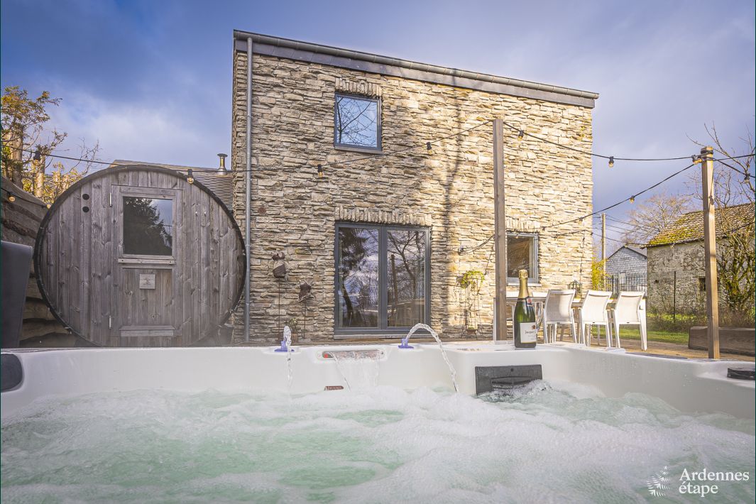 In diesem schönen Steingebäude mit dem authentischen Charme der Ardennen werden Sie alles, was Geselligkeit ausmacht, in vollen Zügen genießen können. Nehmen Sie sich Zeit für ein Frühstück mit leckeren Pfannkuchen und French Toast oder machen Sie es sich im Wohnzimmer für einen unterhaltsamen Spieleabend gemütlich. Auch den Außenbereich können Sie das ganze Jahr über genießen. Im weitläufigen, vollständig umzäunten,privaten Garten mit Terrasse, der nach Süden ausgerichtet ist, können Sie nach einem langen Spaziergang (oder einem entspannten Tag im Pyjama) die Sauna und den Außenwhirlpool genießen.