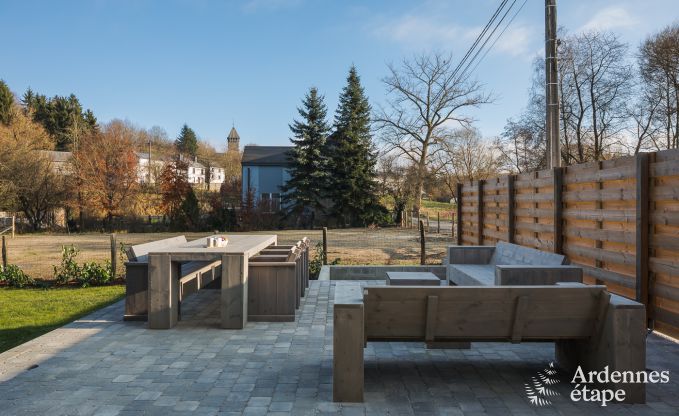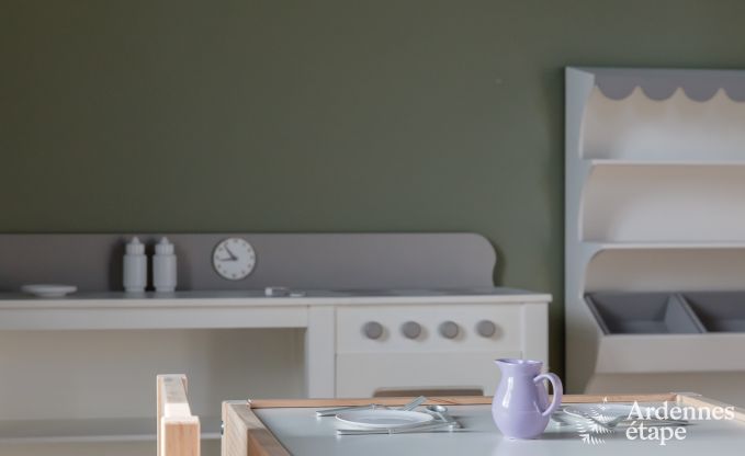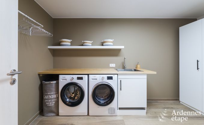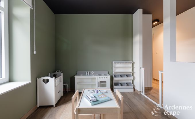 Das Haus verfügt über einen gemütlichen Loungebereich, eine private Terrasse und einen privaten Garten, wo Sie sich entspannen und die Ruhe der Ardennen genießen können. Das Haus hat 4 Schlafzimmer und 4 Badezimmer, was für ausreichend Privatsphäre für alle Gäste sorgt. Für die Kleinen stehen ein Babybett und ein Kinderstuhl zur Verfügung.