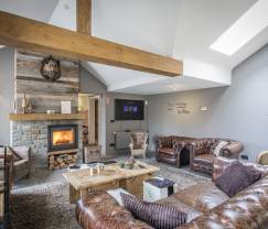 Gemütlichkeit ist Trumpf in diesem Ferienhaus. Das wunderbar behagliche Wohnzimmer lädt zu schönen langen Abenden am Kaminfeuer ein. Authentische Details wie die freiliegenden Holzbalken und die hohe Zimmerdecke, die für ein schönes Raumgefühl sorgt, prägen das Ambiente. Lust auf einen Aperitif oder eine Runde Spiel und Spaß? Dann nichts wie ab an die Bar bzw. den Kickertisch.