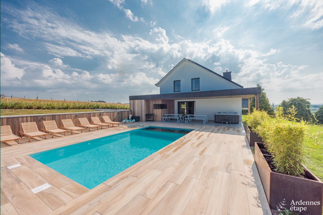 Diese reizvolle, modern eingerichtete Villa (5 Schlafzimmer mit Badezimmer) ist der ideale Ort für einen unvergesslichen Urlaub. Mit Whirlpool und atemberaubendem Blick über das Tal! Ein Wochenende in den Ardennen ist für Sie nicht vorstellbar ohne eine Partie Boule bei Sonnenuntergang, einen Grillabend auf der Terrasse und traumhafte Panoramablicke? Dann sind Sie hier genau an der...