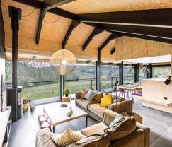 Prachtig ontworpen inspirerend huis. Rustgevend interieur. Magnifiek vrij uitzicht op de heuvels en bossen. Omgeven door paarden, schapen en koeien.