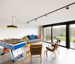 Die Unterkunft verfügt über 4 komfortable Schlafzimmer und 4 Badezimmer, so dass jeder genügend Platz hat. Für die Kleinen gibt es ein Babybett und einen Hochstuhl. Das Haus ist auch mit einem Holzofen ausgestattet, perfekt für gemütliche Abende am Feuer. Und nach einem langen Tag an der frischen Luft können Sie sich in der Sauna entspannen. Und warum nicht zwischendurch eine Runde Tischfußball spielen?