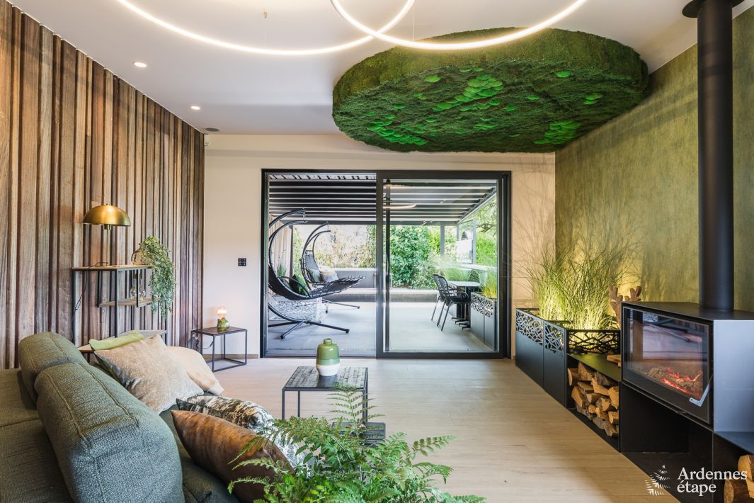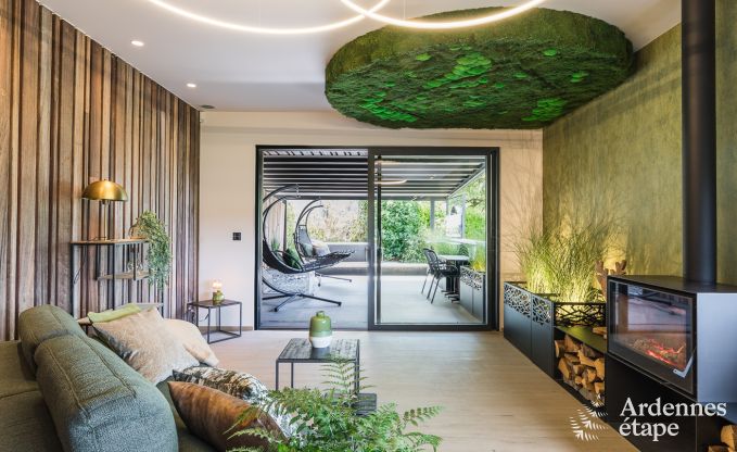 Cette magnifique maison de vacances est entièrement dédiée au luxe, à la détente et au bien-être. A l'intérieur, vous pourrez profiter d'un espace détente avec un hammam et un sauna, et sur votre terrasse, d'un jacuzzi. L'aménagement intérieur est entièrement axé sur les plantes et les matériaux végétaux (beaucoup !). Dans le salon, le poêle à bois crée une atmosphère romantique supplémentaire. Votre chambre et votre salle de bain sont très confortables et décorées de manière originale. Tout est prévu pour votre bébé : une chaise haute, une baignoire et un lit bébé. Vous pourrez ranger vos vélos en toute sécurité dans le local à vélos sécurisé et une borne de recharge est prévue pour votre voiture électrique.